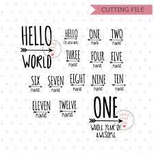 Hello World Svg Baby Milestones Svg Baby Months Svg Monthly Milestones Svg Svg Cut Files For Cricut Silhouette Baby First Year Svg for Silhouette